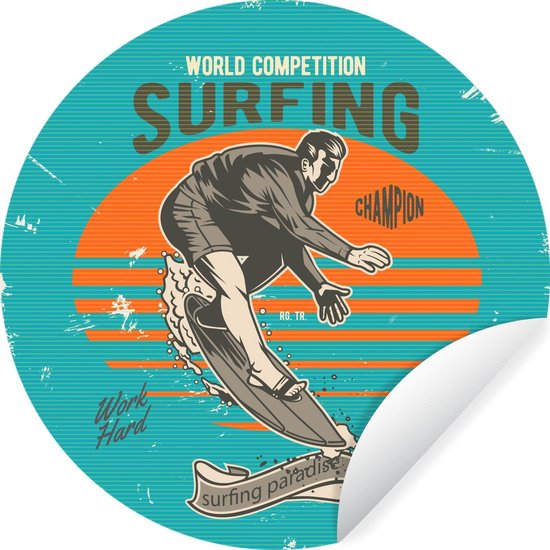 Papier peint autocollant cercle - Vintage - Surf - Planche de surf - Salon - Chambre