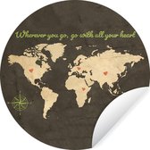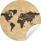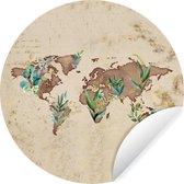 WallCircle - Stickers muraux - Cercle Papier Peint - Wereldkaart - Marron - Vintage - 50x50 cm - Cercle Mural - Auto Adhésif - Autocollant Rond Papier Peint
