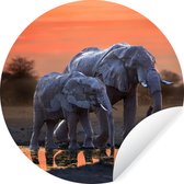 Papier peint cercle autocollant - Éléphant - Water - Animaux - Coucher de soleil - Nature - Salon - Chambre
