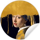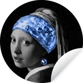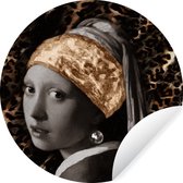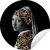 WallCircle - Stickers muraux muraux - Cercle de papier peint - Fille à la boucle d'oreille en perle - Imprimé panthère - Johannes Vermeer - 80x80 cm - Cercle mural - Autocollant - Autocollant de papier peint rond