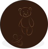 WallCircle - Art - Line Au Trait Tétine Ours En Peluche Sur Fond Marron - Multicolore - 140 X 140 Cm