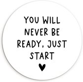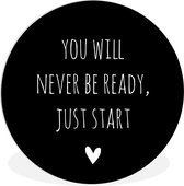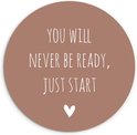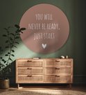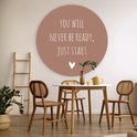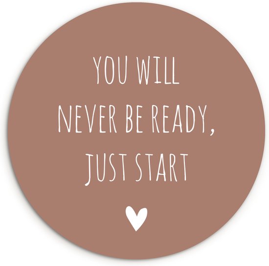 Cercle mural à l'intérieur - Citation en anglais Tu ne seras jamais prêt, il suffit de commencer par un coeur sur fond marron - Décoration murale ronde