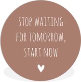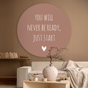 WallCircle - Wall Circle - Wall Circle Indoor - Citation en anglais Vous ne serez jamais prêt, il suffit de commencer avec un coeur sur fond marron - 150x150 cm - Décoration murale - Peintures ronds