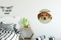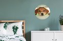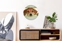 Cercle mural à l'intérieur - Un chiot regarde à travers une clôture - Décoration murale ronde
