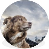 WallCircle - Wall Circle - Wall Circle Inside - Un chiot regarde à travers une clôture - 30x30 cm - Décoration murale - Peintures ronds
