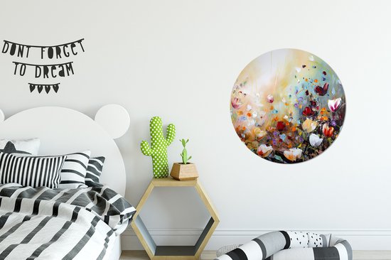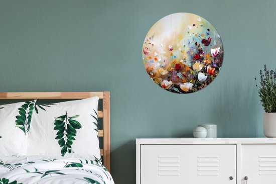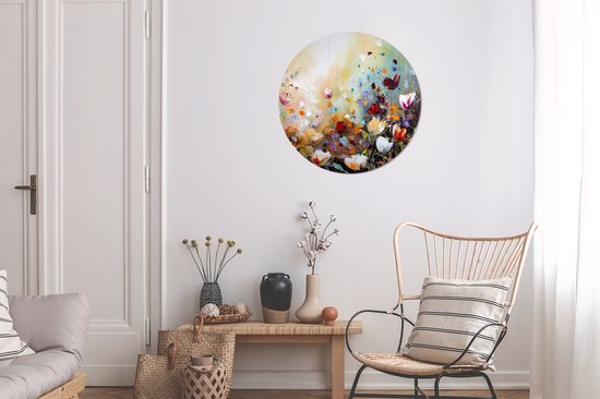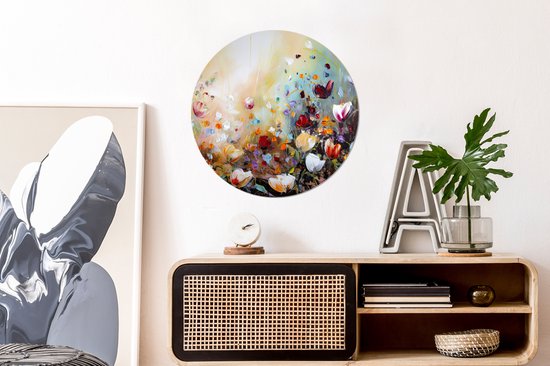 WallCircle - Wall Circle - Wall Circle - Peinture à l'huile - Fleurs - Coloré - Nature - Aluminium - Dibond - 60x60 cm - Intérieur et Extérieur