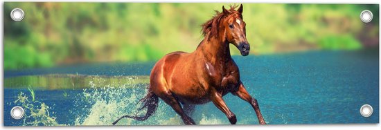 WallClassics - Affiche de jardin – Cheval brun courant dans l' Water - Photo 60x20 cm sur affiche de jardin (décoration murale pour l'extérieur et l'intérieur)