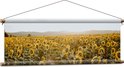 WallClassics - Affiche textile - Tournesols dans le champ - 30x90 cm Photo sur textile