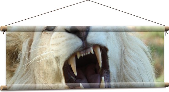 WallClassics - Affiche textile - Lion mâle Witte rugissant - 90x30 cm Photo sur textile