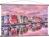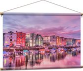 WallClassics - Affiche textile - Maisons colorées au port - 120x80 cm Photo sur textile