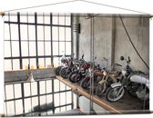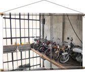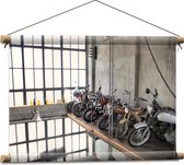 WallClassics - Affiche Textile - Motos Garées dans un Hangar - 90x60 cm Photo sur Textile