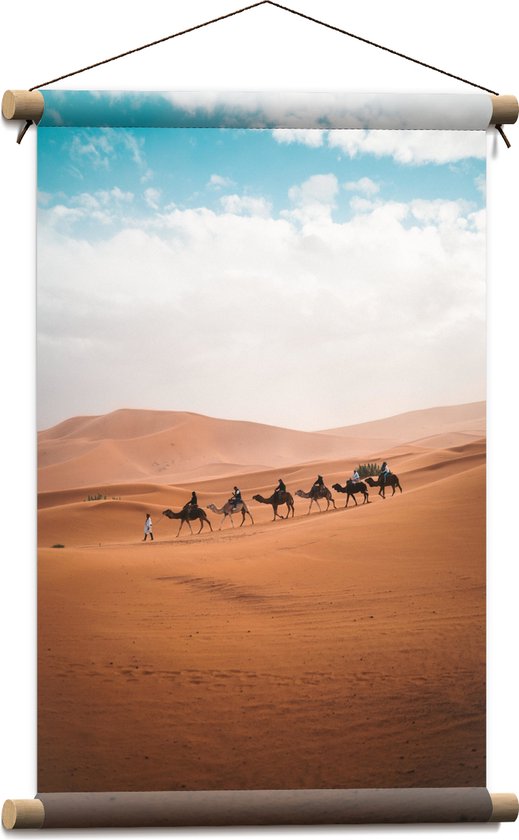 WallClassics - Affiche Textile - Rangée de Chameaux dans le Désert - 40x60 cm Photo sur Textile