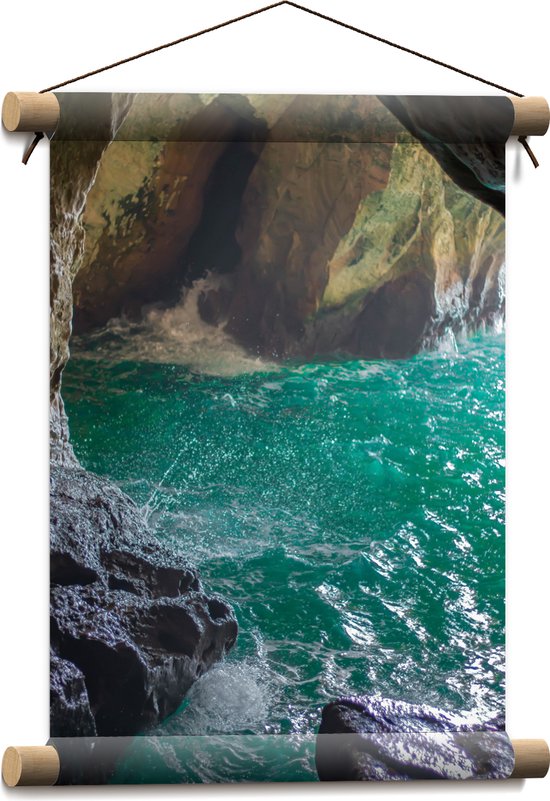 WallClassics - Affiche textile - Water bleue claire dans une grotte brune - Photo sur textile 30x40 cm