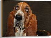 WallClassics - Bois - Basset Hound marron - 50x50 cm - 9 mm d'épaisseur - Photo sur bois (avec système de suspension)