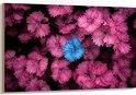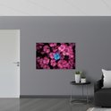 WallClassics - Bois - Bloem bleue sur buisson de fleurs roses - 120 x 80 cm - Épaisseur 9 mm - Photo sur bois (avec système de suspension)