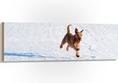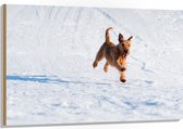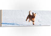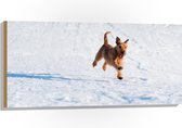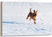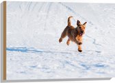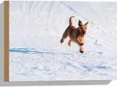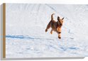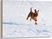 WallClassics - Bois - Chien Marron Courant dans la Neige - 60x40 cm - 9 mm d'épaisseur - Photo sur Bois (Avec Système d'Accrochage)