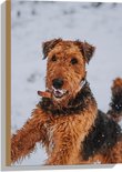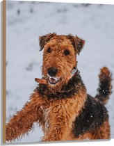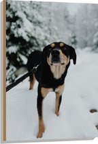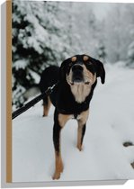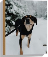 WallClassics - Bois - Chien Zwart et marron dans la neige - 40 x 60 cm - Épaisseur 9 mm - Photo sur bois (avec système de suspension)