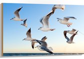 WallClassics - Bois - Mouettes à la Mer - 105x70 cm - 12 mm d'épaisseur - Photo sur Bois (Avec Système d'accrochage)