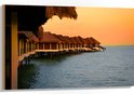 WallClassics - Bois - Maisons sur Pilotis dans la Mer - 100x75 cm - 12 mm d'épaisseur - Photo sur Bois (Avec Système de Suspension)