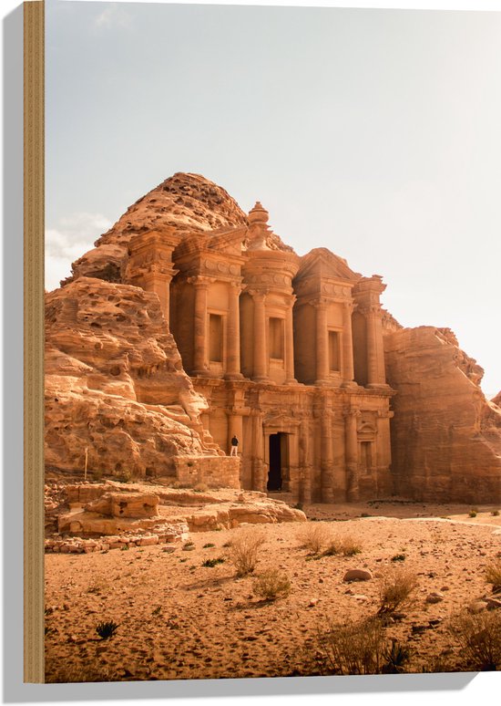 WallClassics - Bois - Monument Ad Deir en Jordanie - 75x100 cm - 12 mm d'épaisseur - Photo sur bois (avec système de suspension)