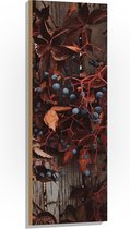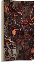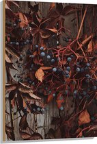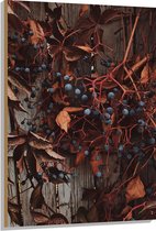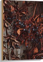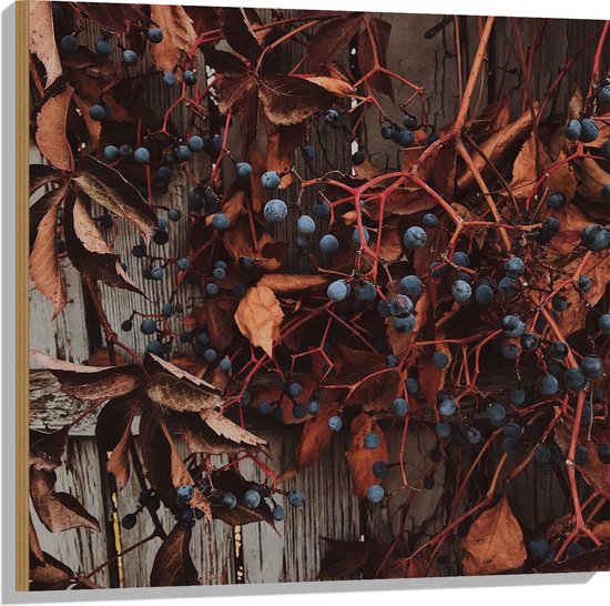 WallClassics - Bois - Plante Marron avec Baies sur la Clôture - 80x80 cm - 12 mm d'épaisseur - Photo sur Bois (Avec Système de Suspension)