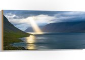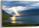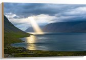 WallClassics - Bois - Rayon de soleil sur Water près de Montagnes - 40 x 30 cm - Épaisseur 12 mm - Photo sur bois (avec système de suspension)