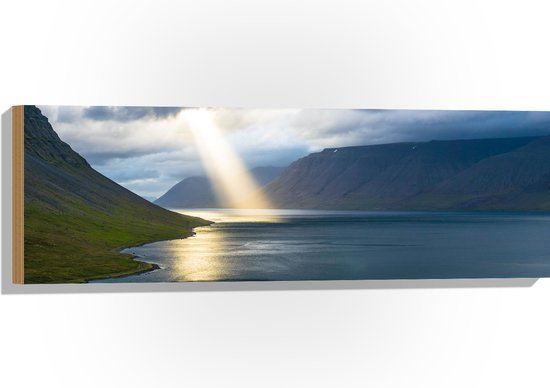 WallClassics - Bois - Rayon de soleil sur Water près de Montagnes - 90 x 30 cm - Épaisseur 12 mm - Photo sur bois (avec système de suspension)