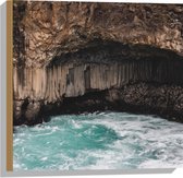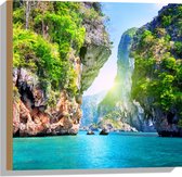 WallClassics - Bois - Rochers dans la Mer - 50x50 cm - 12 mm d'épaisseur - Photo sur Bois (Avec Système d'accrochage)