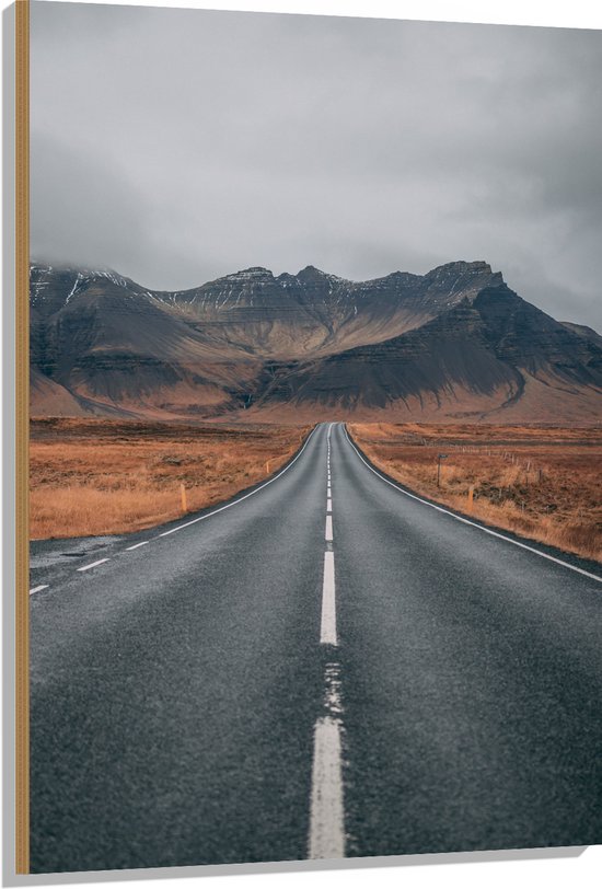 WallClassics - Bois - Route dans une zone montagneuse déserte - 60x80 cm - Épaisseur 12 mm - Photo sur bois (avec système de suspension)
