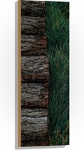 WallClassics - Bois - Sauterelle dans l'herbe - 90x30 cm - Épaisseur 12 mm - Photo sur bois (avec système de suspension)