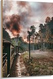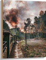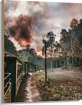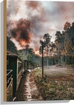 WallClassics - Bois - Train à vapeur entre les Arbres - 80x120 cm - 12 mm d'épaisseur - Photo sur bois (avec système de suspension)