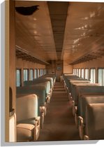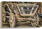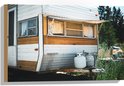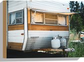 WallClassics - Bois - Vieille caravane garée dans une zone forestière - 60x40 cm - 9 mm d'épaisseur - Photo sur bois (avec système de suspension)
