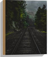 WallClassics - Bois - Voie ferrée entre Forêts vertes - 60x80 cm - 12 mm d'épaisseur - Photo sur bois (avec système de suspension)