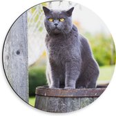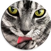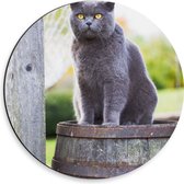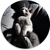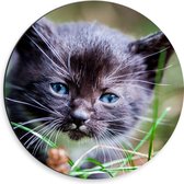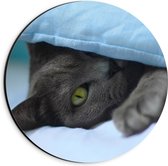 WallClassics - Cercle mural Dibond - Chat gris aux yeux verts sous un oreiller - Photo 30x30 cm sur cercle mural en aluminium (avec système d'accrochage)