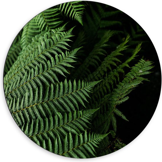 WallClassics - Cercle mural Dibond - Feuilles vertes en gros plan - 60x60 cm Photo sur cercle mural en aluminium (avec système d'accrochage)