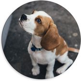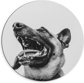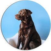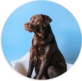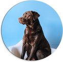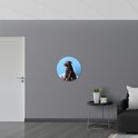 WallClassics - Cercle Mural Dibond - Grand Chien Assis sur Chaise avec Tasse de Café - Photo 60x60 cm sur Cercle Mural Aluminium (avec système d'accrochage)