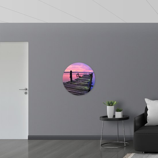 WallClassics - Cercle mural en Dibond - Jetée sur l' Water avec ciel violet - Photo 70x70 cm sur cercle mural en aluminium (avec système de suspension)