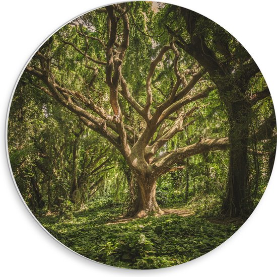 WallClassics - Cercle mural en panneau de mousse PVC - Arbre sinueux dans la forêt - Photo 30x30 cm sur cercle mural (avec système de suspension)