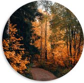 WallClassics - Cercle mural en panneau de mousse PVC - Chemin entre Arbres et herbe verte - Photo 80x80 cm sur cercle mural (avec système d'accrochage)