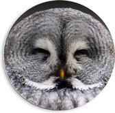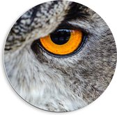 WallClassics - Cercle mural en panneau de mousse PVC - Gros plan d'une chouette grise avec oeil Oranje - Photo 40x40 cm sur cercle mural (avec système de suspension)