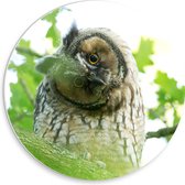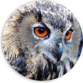 WallClassics - Cercle mural en panneau de mousse PVC - Hibou grand-duc mangeant sur une souche d'arbre - Photo 30x30 cm sur cercle mural (avec système de suspension)