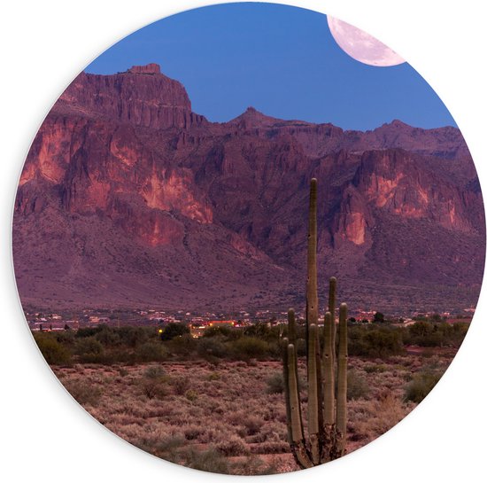 WallClassics - Cercle mural en panneau de mousse PVC - Lune sur les Montagnes dans une zone Droog - Photo 90x90 cm sur cercle mural (avec système de suspension)