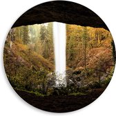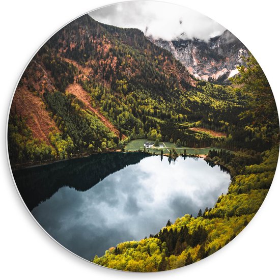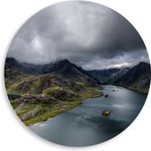 WallClassics - Cercle mural en panneau de mousse PVC - Nuages sombres sur une rivière dans une zone forestière - Photo 50x50 cm sur cercle mural (avec système de suspension)