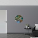 Cette photo est imprimée sur une plaque ronde en mousse PVC. Celui-ci est en PVC expansé. L'avantage de la feuille de mousse PVC est qu'il s'agit d'un matériau très léger et qu'il peut donc être suspendu de toutes sortes de façons.