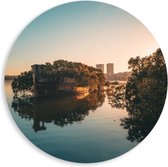 WallClassics - Cercle mural en panneau de mousse PVC - Pont entre les Water envahies par la végétation - Photo 80x80 cm sur cercle mural (avec système de suspension)
