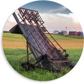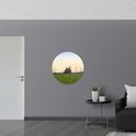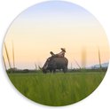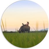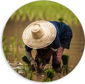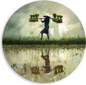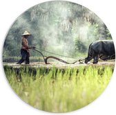 WallClassics - Cercle Mural en Plaque de Mousse PVC - Fermier Asiatique Laissez le Taureau Faire le Travail - 80x80 cm Photo sur Cercle Mural (avec système d'accrochage)