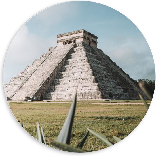 WallClassics - Cercle Mural en Plaque de Mousse PVC - Pyramide de Kukulcán - Mexique - 60x60 cm Photo sur Cercle Mural (avec système d'accrochage)