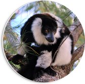 WallClassics - Cercle Mural en Plaque de Mousse PVC - Singe Vari aux Yeux Marrons Gros Plan - 20x20 cm Photo sur Cercle Mural (avec système d'accrochage)