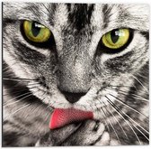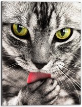 WallClassics - Dibond - Chat Tigré Léchant Patte - Photo 20x60 cm sur Aluminium (Avec Système d'Accrochage)