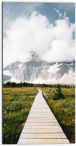 WallClassics - Dibond - Chemin de bois vers les Montagnes - Photo sur aluminium 60x80 cm (avec système de suspension)